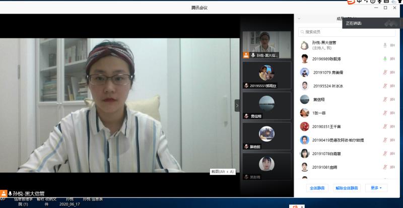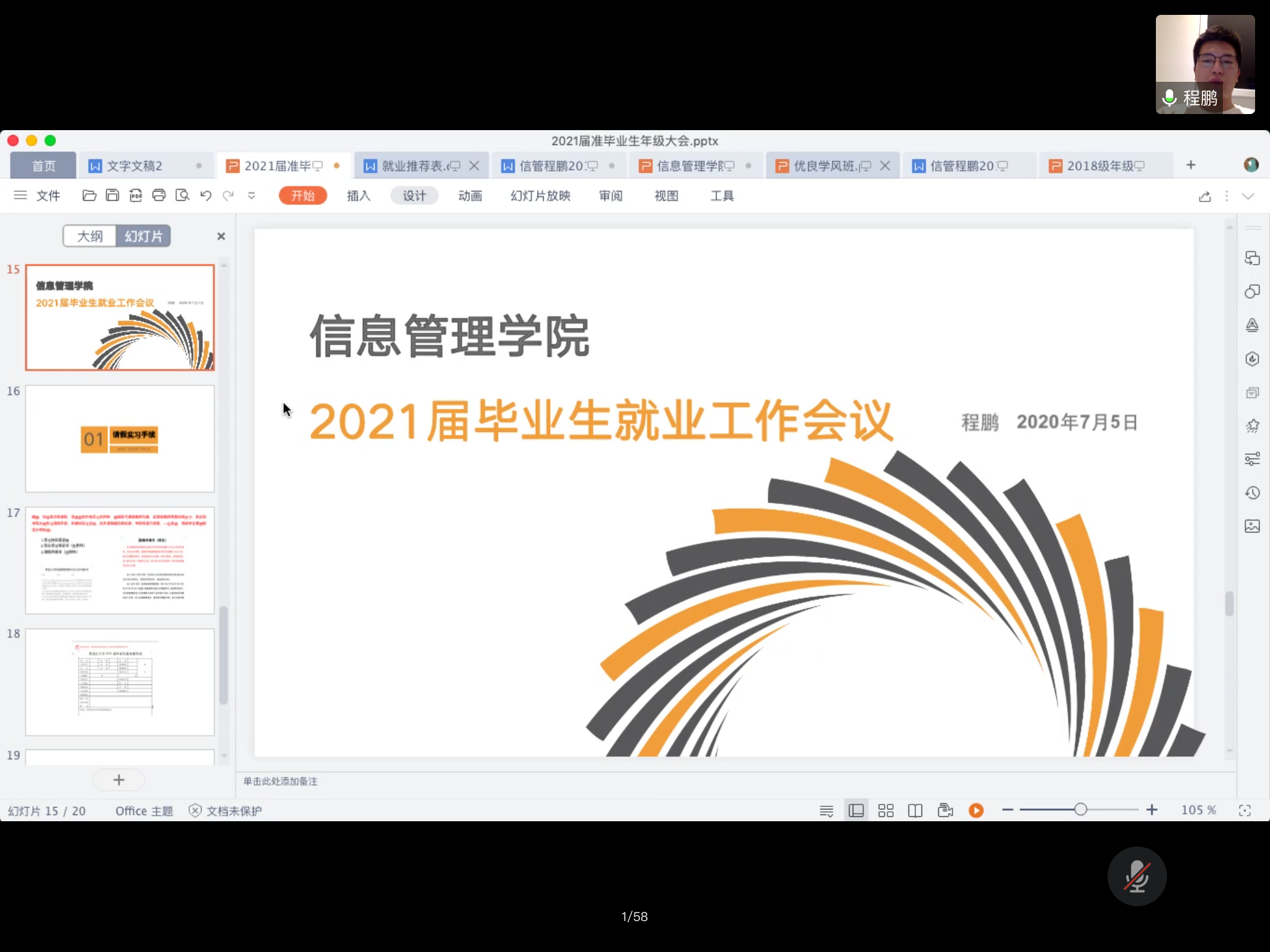 随后,辅导员老师详细说明了关于本学期线上期末考试的注意事项与学校学业预警制度,告知同学们一定要诚信考试,不得有违背考试规则的情况,要提前做好期末复习工作。同时,希望同学们对自己目前的大学生活有合理认知,做好大学阶段的个人规划。程鹏老师还就2017级即将面临的保研、就业问题展开详细说明。